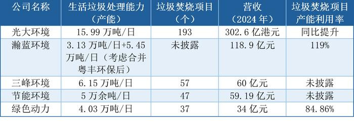 伟明环保相关负责人在回复记者采访时称,公司2024年整体产能利用率较高,根据公开数据口径测算达97%;绿色动力去年产能利用率为84.86%,同比略降。